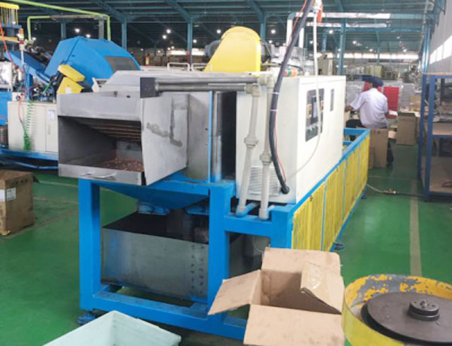 • 本機(jī)用不銹鋼球作為研磨料,通過(guò)振動(dòng)研磨去除小彎頭毛刺并進(jìn)行清洗,清洗干凈的小彎頭自動(dòng)進(jìn)入滾筒,由熱風(fēng)吹干,分離研磨鋼球。
